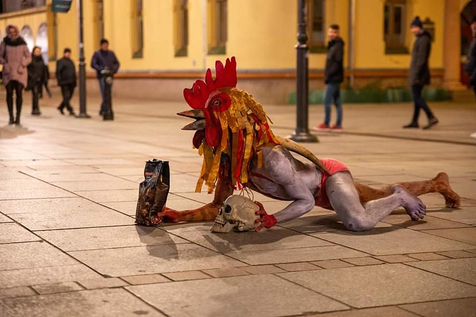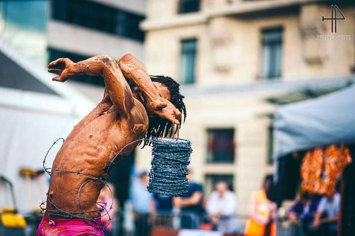 Pour lui, il s’agit de la vie sur scène ou dans un espace donné, possible d’accéder par le medium du corps, les symboles des images rituelles et éléments visuels comme alliés, en harmonie avec l’esprit et l’âme de l’espace pour insuffler un dialogue avec les êtres présents, sans frontières, existant dans toute sa totalité. Les résultats donnés par les œuvres proposées sont une série de processus de la vie transgressive qui marque le présent et plonge les imaginaires dans la réalité qui rejoint l’actualité brulante.