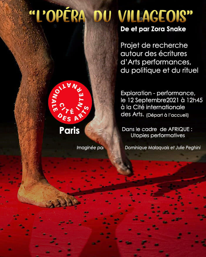 Suite aux recueils des différentes pratiques esthétiques, des pensées d’ici et d’ailleurs, des sages du village, des savants des villes, des historiens, chercheurs en Art performance, danses et poésies pluridimensionnelles, » L’opéra du Villageois » est un voyage artistique exploré sur nos différences des regards, d’écritures, d’interprétations de nos imaginaires et expressions singulières sur des pratiques d’Art performance en Afrique, du politique et du rituel à l’ère de la mondialisation.