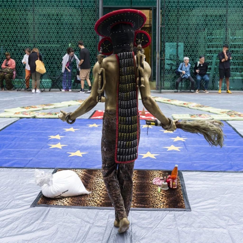 Le 27 août 2022, Sur l’exil des masques, performance de Zora Snake, Bruxelles (Belgique).