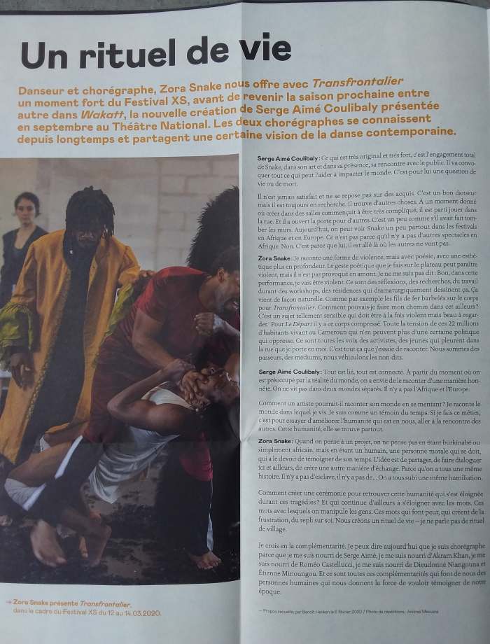 Créé, interprété et dansé par : Zora Snake, Adonis Nebie, Sigué Sayouba, Marion Alzieu, Nawelle Antonia, Marko, Jollie Ngemi, Kiki Robert Koudogbo, Ahmed Soura, Bibata Ibrahim Maiga