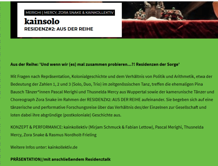 Collaboration entre la Compagnie Zora Snake (Cameroun) et le Kainkollektiv (Allemagne)
