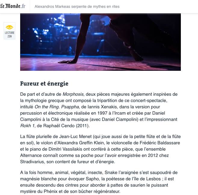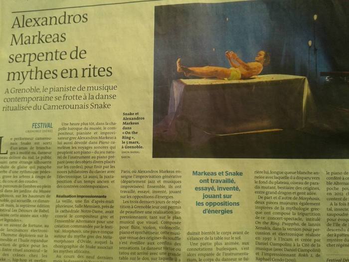 «On the Ring» est une rencontre atypique entre un ensemble de musique contemporaine, Alternance, un compositeur improvisateur Alexandros Markeas, et Zora Snake.