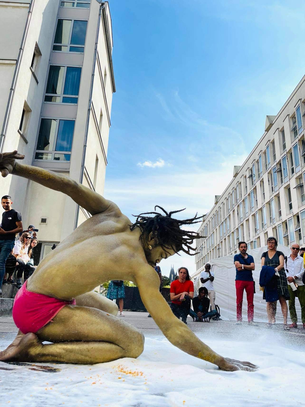 Il participe à plusieurs festivals en Afrique (Mantsina sur scène, les récréâtrales, les praticables, dialogue des corps, la biennale de la danse en Afrique…), en Europe (Festival international de Liège, les invites de Villeurbanne, karavel, sens interdits, la plage des six pompes, Spring festival, Tanz im august…) avec ses œuvres « Transfrontalier » (sur l’immigration où il s’entoure des fils de fer barbelé et danse), « Le départ » (sur la crise politique de son pays et le gouvernement actuel), des performances et happenings tels que « 20 heures » créé durant le confinement, une performance unique à la cité des arts, en hommage à Dominique Malaquais, le rituel du serpent, et plein d’autres collaborations.