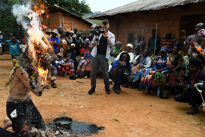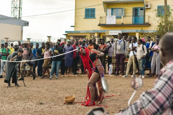 Il mêle représentations publiques dans les quartiers, les rues, les marchés, les cours du village, les chefferies, les forêts, les lieux sacrés, les carrefours et espaces institutionnels.
