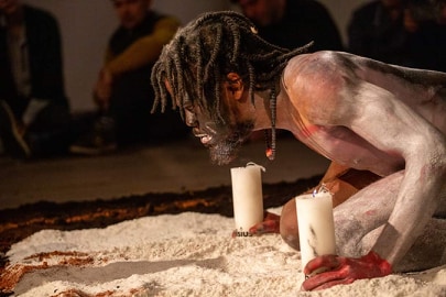 Quatrième volet des séquelles de la colonisation, ce projet artistique est né de la rencontre entre deux artistes, un plasticien – Clay Apenouvon du Togo – et un danseur chorégraphe chercheur en Art performance – Zora Snake du Cameroun après l’appel à Projet The Burden of memory du Goethe Institut. L’œuvre plastique et la danse sont comme deux corps qui jouent ensemble, s’interpellent, s’entremêlent, se répondent pour ouvrir un autre regard sur « Les masques ».