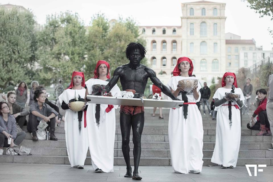 Pensé comme un rituel de réconciliation, la performance pose la nécessité d’un geste artistique pour que le corps humain retrouve sa place dans le monde des machines, et que les hommes dialoguent à nouveau sans le truchement de la technologie.