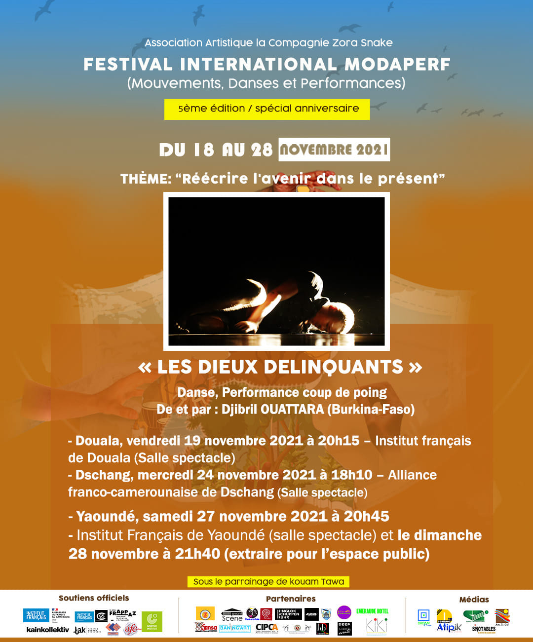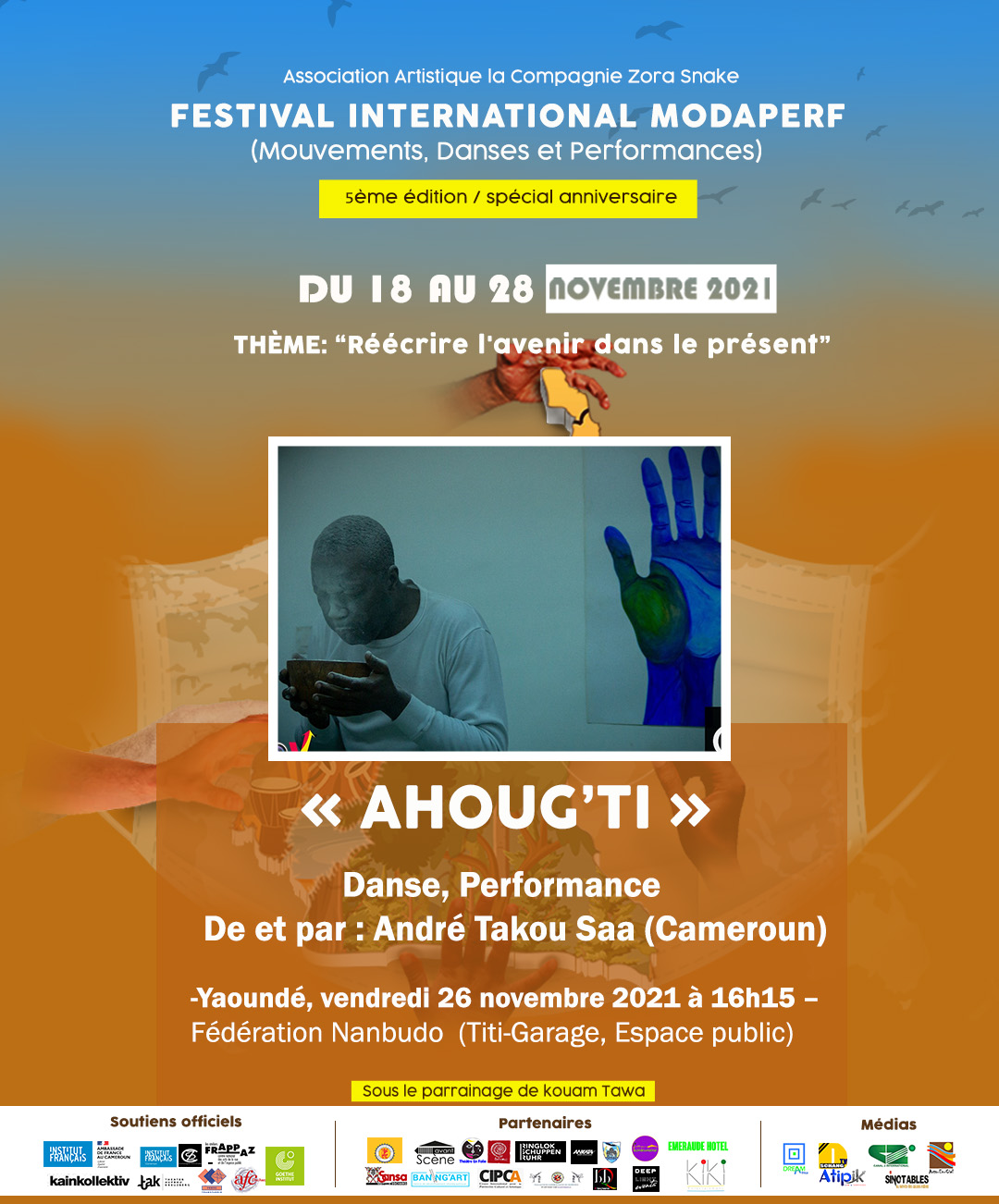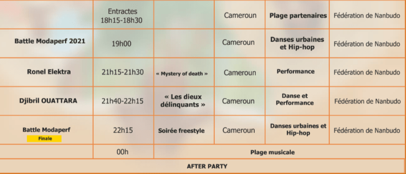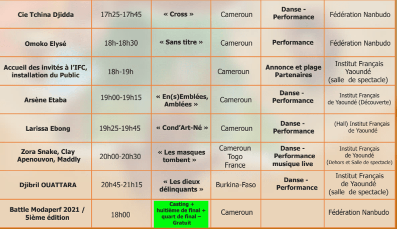 MODAPERF 5e édition voyagera avec des artistes invités venant de France, Russie, Suisse, Belgique, Allemagne, Côte d’ivoire, Togo, Mali, Corée, Burkina-Faso, Benin, Cameroun, pour Réécrire l’avenir dans le présent.