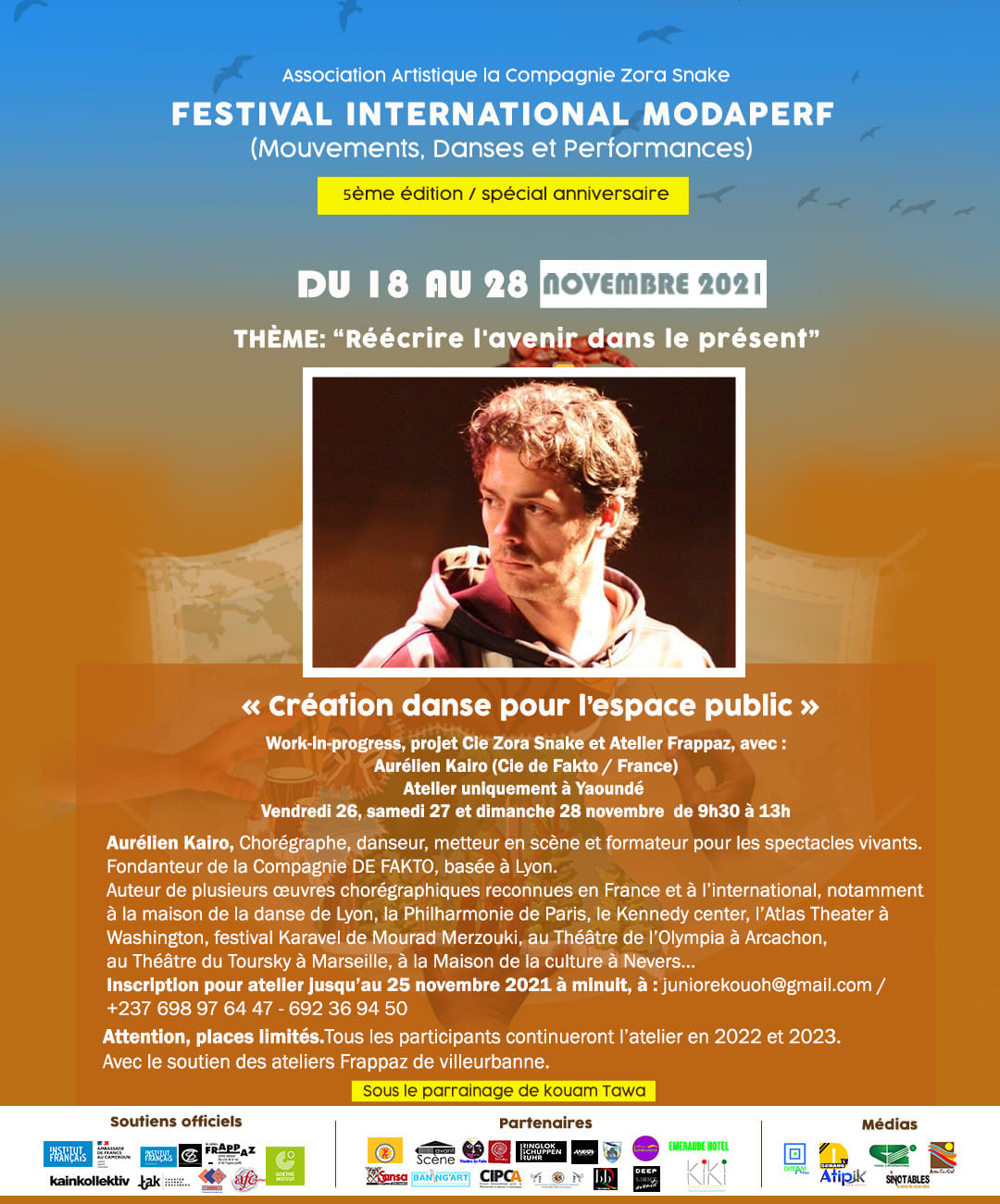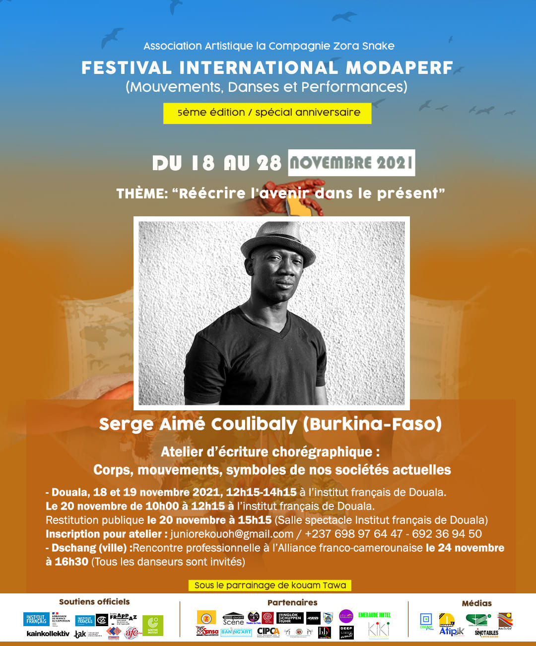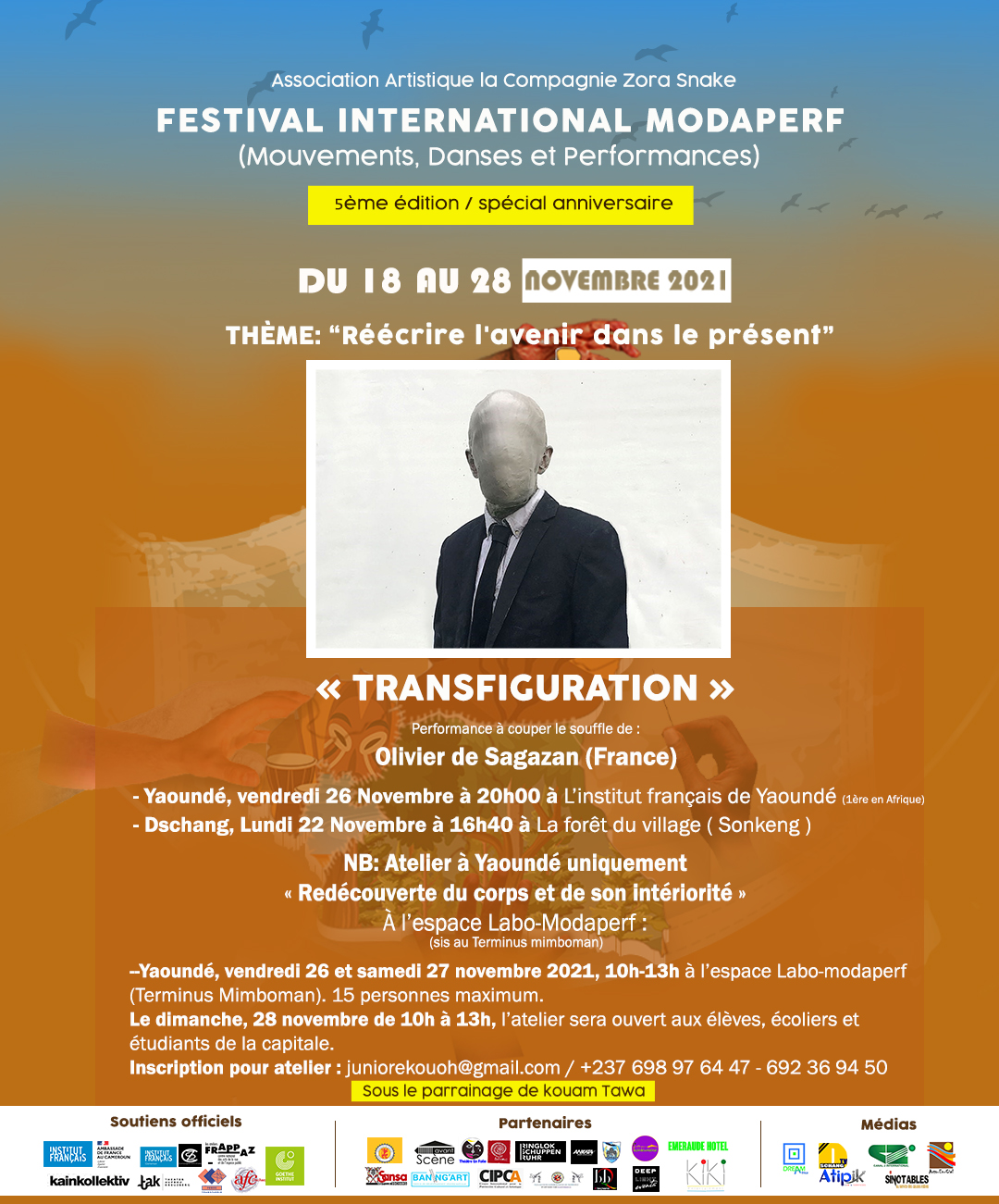MODAPERF 5e édition voyagera avec des artistes invités venant de France, Russie, Suisse, Belgique, Allemagne, Côte d’ivoire, Togo, Mali, Corée, Burkina-Faso, Benin, Cameroun, pour Réécrire l’avenir dans le présent.