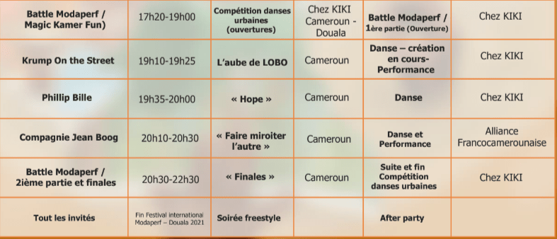 Programme de DOUALA, du 18 au 20 novembre 2021