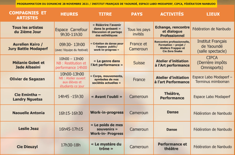 Programme de Yaounde, du 26 au 28 novembre 2021