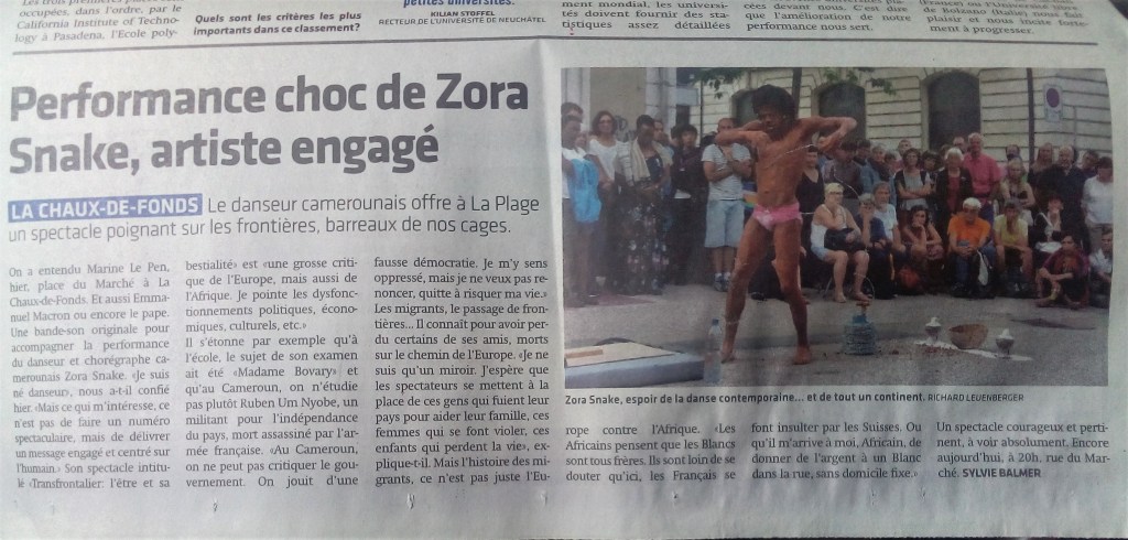 Soutiens : festivals Sens Interdits (Lyon), Festival Préavis de désordre urbain (Marseille), Institut Français du Cameroun (Yaoundé), Festival les invites de Villeurbanne (Lyon), Festival les récréâtrales (Burkina-Faso), Festival Mantsina sur scène (Congo-Brazzaville), L’univers des mots (Guinée Conakry), Festival de Liège, Sprinf-Performance (Hollande)